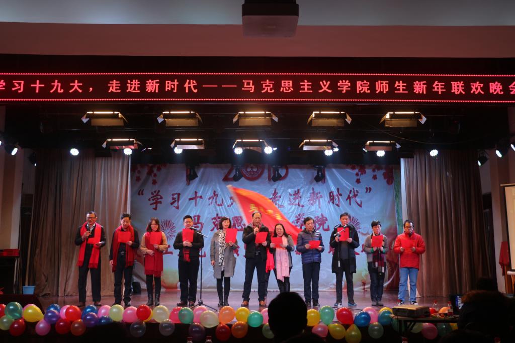 12月29日晚七点,beat3652018年教职工文艺汇演暨师生新年联欢晚会在东区老年人活动中心隆重举行。校党委书记何光彩、beat365英国官方网站院长高翔莲、党委书记侯志军,以及全体教职工和学生到场参加。本次晚会以“学习十九大,走进新时代”为主题,庆祝党的十九大顺利召开,迎接2018新时期的到来。