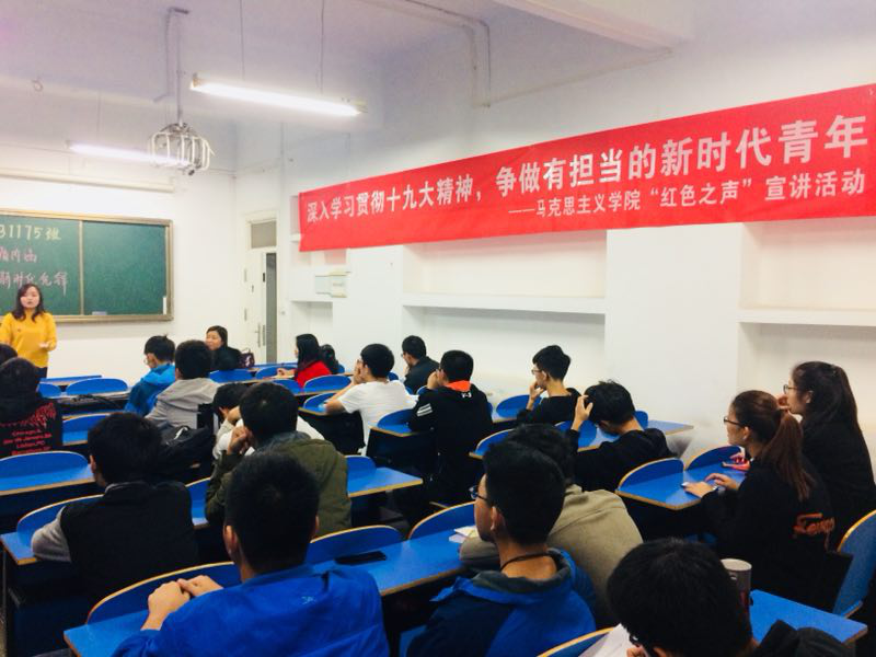 宣讲过程中,主讲人以改革开放新时期新“四大件”和中国道路新时代新“四大发明”为例与现场同学进行抢答互动,同学们积极踊跃的发言,表达自己的观点。本次互动环节,现场气氛燃爆。最后,主讲人结合十九大报告内容,讲述了当代大学生的责任与使命,鼓励大家争做有担当的新时代先锋,在实现中国梦的伟大实践中放飞青春梦想,在实现个人社会价值的不懈奋斗中书写人生华章。