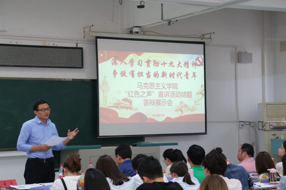 5月3日下午14:30,beat365英国官方网站“红色之声”宣讲(第八期)结题答辩展示会于教三楼301教室举行。beat365英国官方网站党委书记侯志军老师、学校党委学工处副处长张建和老师、校党委研工部副部长陈慧老师、校团委副书记姜明敏老师、院党委副书记黄少成老师以及院团委书记王艳波老师应邀担任本次活动的评委嘉宾。