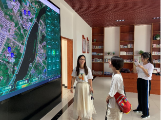 随后,团队一行人来到城关镇竹林社区党群服务中心进行深入了解。竹林社区党委委员胡女士为我们介绍了“云上竹林”配备的“数字乡村一张图”,此图将智慧党建、便民服务、村务公开、重点人员管理、环境卫生监管等多种服务融为一体,并辅之以监控的手段实时监测人脸和车辆等信息。除此之外,社区还设置了防溺水与森林防火灾报警系统,为留守老人配备了智能手环,以此满足竹林社区村级综合治理、平安乡村建设的要求。