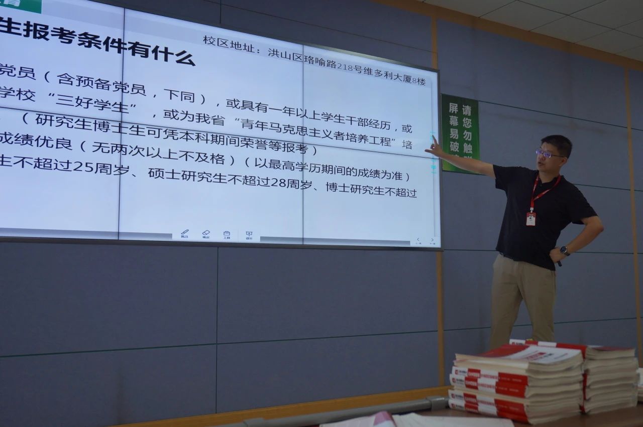 张轩老师向同学们依次介绍了选调生综合情况,选调与国考、省考、事业单位与银行的对比、全国选调生考试周期、湖北选调生笔试面试考情考务介绍,湖北选调生备考方略等详细内容。