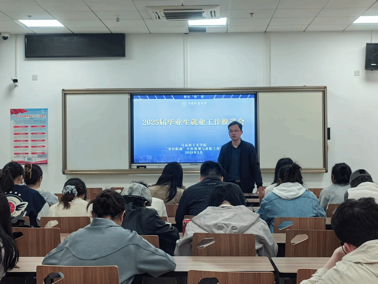 为深入贯彻落实学校就业工作部署,切实推进毕业生就业工作,2025年3月27日下午,beat365英国官方网站“勇往职前”生涯规划与求职工作室于东教楼B106召开2025届毕业生就业推进会。学院党委副书记武彦斌、毕业班辅导员姚晟,全体本科、硕士、博士毕业生参加了本次会议。