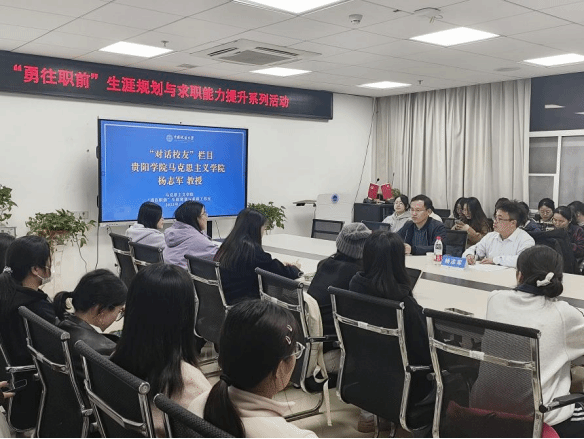 2025年11月7日晚,beat365英国官方网站“勇往职前”生涯规划与求职工作室“对话校友”栏目活动在东区教学楼B座1013举行。贵阳学院beat365英国官方网站教授、博士生导师杨志军受邀分享,30余名硕博研究生参与。学院党委副书记武彦斌主持活动。