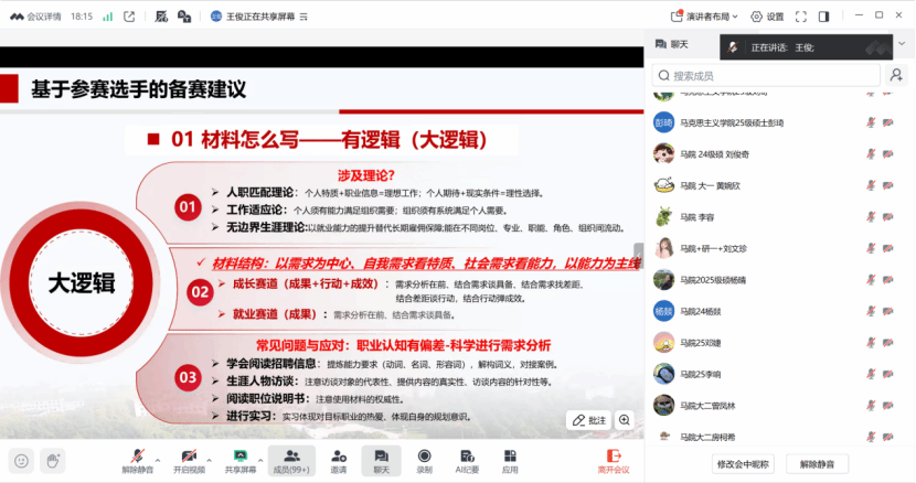 11月14日晚,海洋学院、李四光学院、beat365英国官方网站、教育研究院四院联合举办“职业生涯规划大赛”线上培训。王俊老师为参赛同学讲解职业规划材料如何撰写以及答辩注意事项。线上共吸引了300余名学生参加培训,老师的精彩讲解收获了广大师生的一致好评。