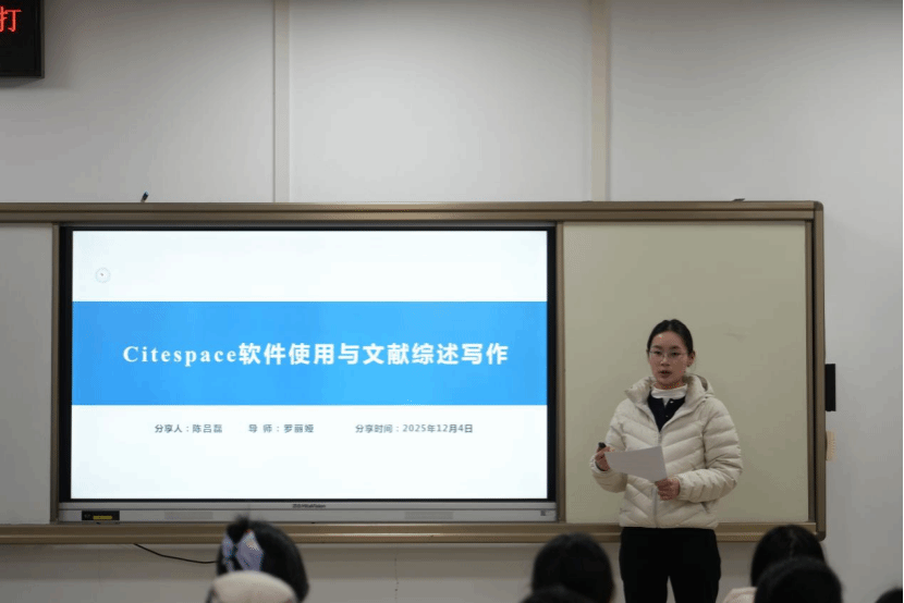 为全面提升beat365研究生学术创新能力与科研实践素养,促进研究方法学习与学术规范训练,12月4日晚,第二十八期“理论之光”研究生学术论坛于东区教学综合楼B0106顺利举办。本期论坛聚焦“CiteSpace应用与文献综述写作”,旨在通过实用工具讲解与写作经验分享,提升研究生文献梳理与知识可视化分析能力,进一步强化学术写作的系统性与创新性。特邀beat365英国官方网站2024级硕士研究生陈吕磊担任主讲人。