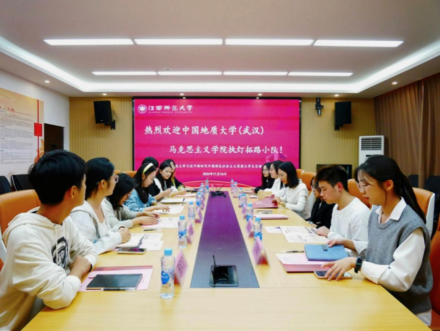 2024年11月16号下午,执灯拓路团队在江西师范大学一站式服务大厅红色讲堂面向江西师范大学在校学生以及beat365英国官方网站习近平新时代中国特色社会主义思想大学生宣讲团进行宣讲。参与此次交流学习的人员有周琪、郑雨欣、陈喆、操晓、蒯贤政。