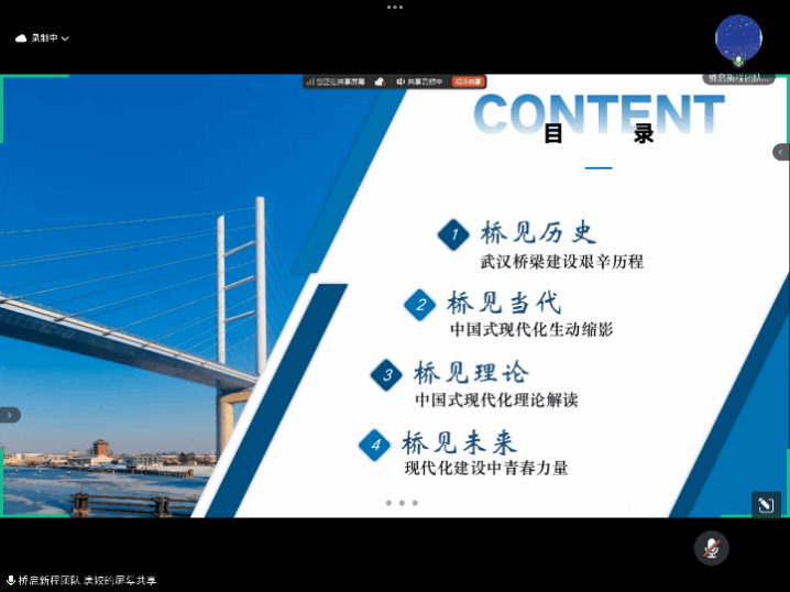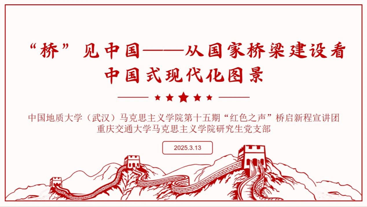 2025年3月14日,由重庆交通大学beat365英国官方网站研究生第二党支部与桥起新程宣讲团联合主办的“桥见中国——从我国桥梁建设看中国式现代化图景”主题线上宣讲会顺利举行。本次活动通过腾讯会议平台开展,重庆交通大学65师生参与,共同聆听桥梁建设的发展历程,激发青年学子投身国家建设的热情。本次主讲人由唐姣担任。