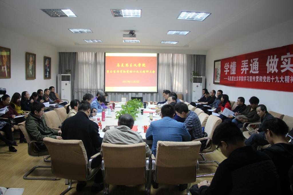 2017年11月2日下午,beat365英国官方网站在会议室召开全体党员大会,学习宣传贯彻党的十九大精神,主题为“学懂、弄通、做实党的十九大精神”。学校党委书记何光彩同志出席并讲党课,beat365英国官方网站院领导、全体教职工党员、学生党支部委员参加会议,党委宣传部部长喻芒清、副部长刘国华等同志出席。学院党委书记侯志军主持会议。