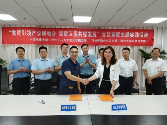 党委书记汪再奇与湖北省邮电学校于熔校长代表双方签订了党建翼联合作协议签订。陈军副院长代表学院为湖北省邮电学校颁授“学生实习实践基地”铜牌。