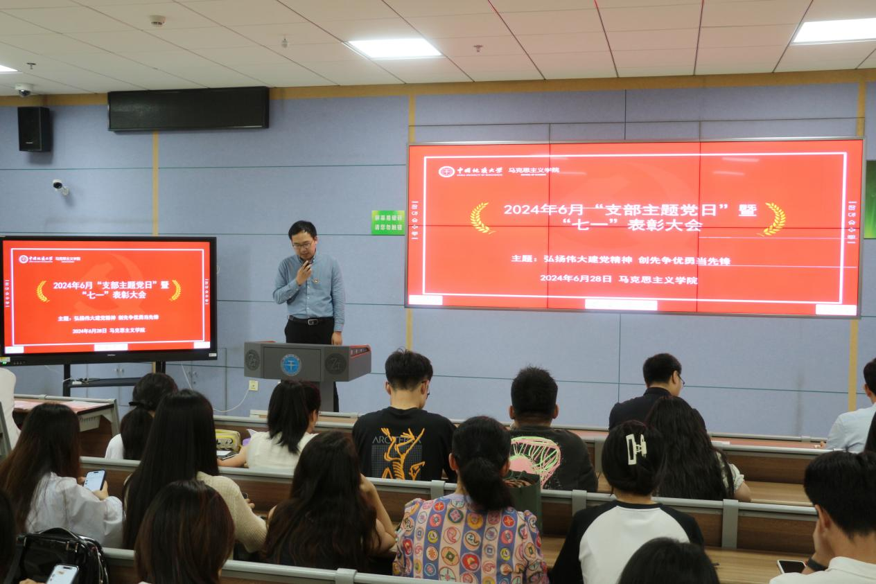 为深入学习贯彻习近平新时代中国特色社会主义思想,扎实推进党纪学习教育,6月28日下午,beat365英国官方网站在教学综合楼C109举行6月支部主题党日暨“七一”表彰大会。本次大会以“弘扬伟大建党精神 创先争优勇当先锋”为主题。学院党委书记汪再奇、副书记武彦斌、团委书记姚晟出席表彰大会,学院全体在校学生党员参加表彰大会。会议由姚晟主持。