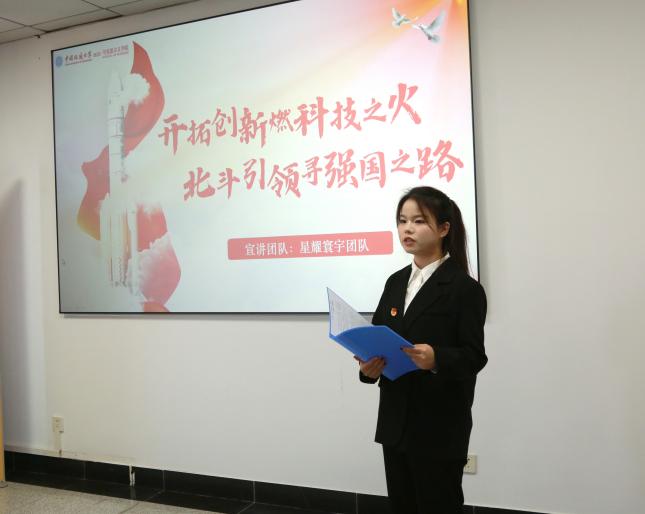 “红色之声”宣讲团成员向大家作“开拓创新燃科技之火,北斗引领寻强国之路”的主题宣讲,五位宣讲成员依次向大家讲述了北斗卫星的研发历程、取得的的辉煌成就等,激发了在场听众对科技创新和国家发展的无限憧憬与信心。