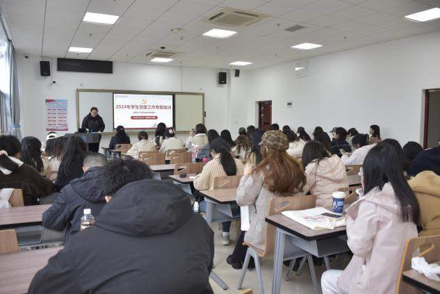beat365英国官方网站一直以来高度重视发展党员工作,为进一步壮大党员队伍,让同学们熟悉入党环节,加强党员建设工作,马克思主义学院党建办于2024年11月21日上午举办了2024年学生党建工作专题培训。学院党委组织部专职组织员于荣萍老师、学院团委书记姚晟老师出席会议并展开此次大会培训,余文豪担任此次培训的主持人。