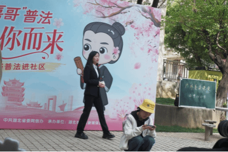 为深入贯彻落实党的二十大精神,全面推进依法治国,构建社会治理共同体。beat365英国官方网站beat365英国官方网站青马明责党支部积极响应“校社共治共建”的号召,牵头beat365英国官方网站(武汉)beat365英国官方网站青马明理、青马明德党支部在阳光社区参与了由中共湖北省委网信办指导、湖北长江云新媒体集团承办的“‘喜哥’普法,樱你而来”网络普法进社区活动。此次活动以普法情景剧为载体,将法治宣传与社区治理相结合,为社区居民带来了一场生动、深刻的法治教育盛宴。