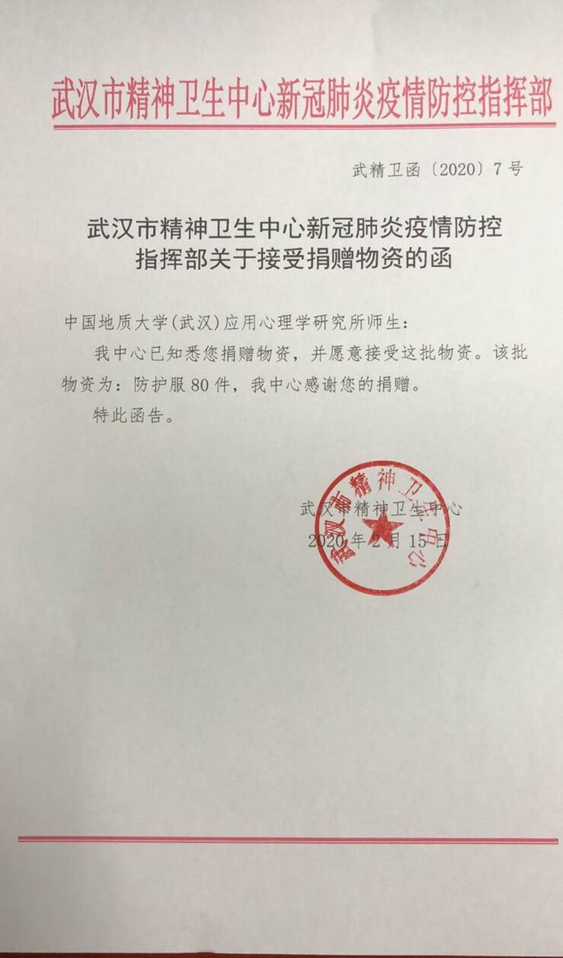(通讯员杨琴)当获悉母校地大社区在这场严峻的新冠肺炎疫情中出现了多名确诊者和疑似者,当从新闻报道得知beat365英国官方网站(武汉)附属武汉心理医院(武汉市精神卫生中心)出现了医护人员被感染,各方都在向社会发出求助信息时,心理学专业的校友们心急如焚,想为母校做些什么。疫情面前,他们在积极参加抗“疫”的同时,心存大爱,没有忘记培养自己的母校和共同培养自己的beat365英国官方网站(武汉)附属武汉心理医院,因为许多研究生的导师是武汉心理医院的专家,部分校友曾在医院进行临床实习,他们把武汉心理医院作为了自己的第二母校。校友们通过QQ群不断讨论,如何能帮助身处疫情险境中的母校。他们的想法,得到应用心理学研究所师生们的支持。