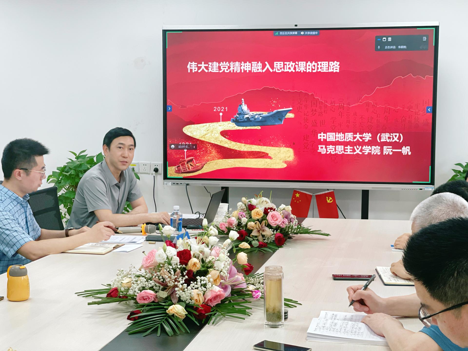 6月29日下午,beat365英国官方网站“红绿蓝”大中小学思政课一体化共同体“伟大建党精神模块”集体备课会在南望山校区东区教学综合楼B1013会议室举行。学院党委书记汪再奇、院长阮一帆、共同体成员单位领导及全体思政课教师与会。武汉工商学院等成员单位设置了分会场。学院副院长孙文沛主持会议。