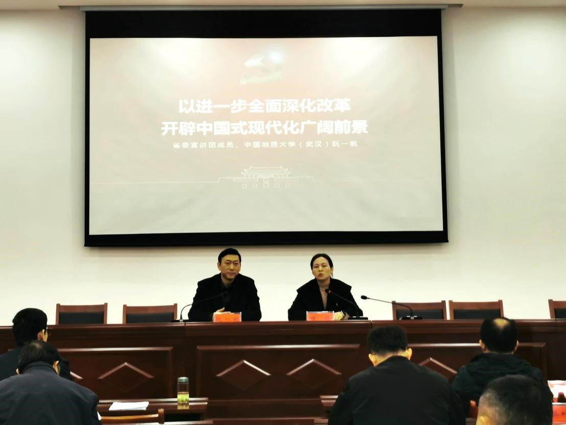 在英山县卫健局,学习贯彻党的二十届三中全会精神武汉青年宣讲团成员曹阳副教授以“新征程上进一步全面深化改革的行动纲领——党的二十届三中全会精神解读”为题,从进一步全面深化改革的重大意义、总目标、主要内容等方面详细解读了党的二十届三中全会精神的各项决策部署。他强调,全面深化改革需要明确目标、突出重点、注重实效。此次报告站位高,理念新,具有很强的针对性、指导性和可操作性。英山县卫健局领导班子成员,县直医疗卫生单位党政负责人,各乡镇分院分管党建领导,民营医院主要负责同志以及局机关和疾控中心(卫生监督所)干部职工聆听了宣讲,并纷纷表示要进一步增强政治责任感、历史使命感坚定拥护改革、踊跃投身改革。