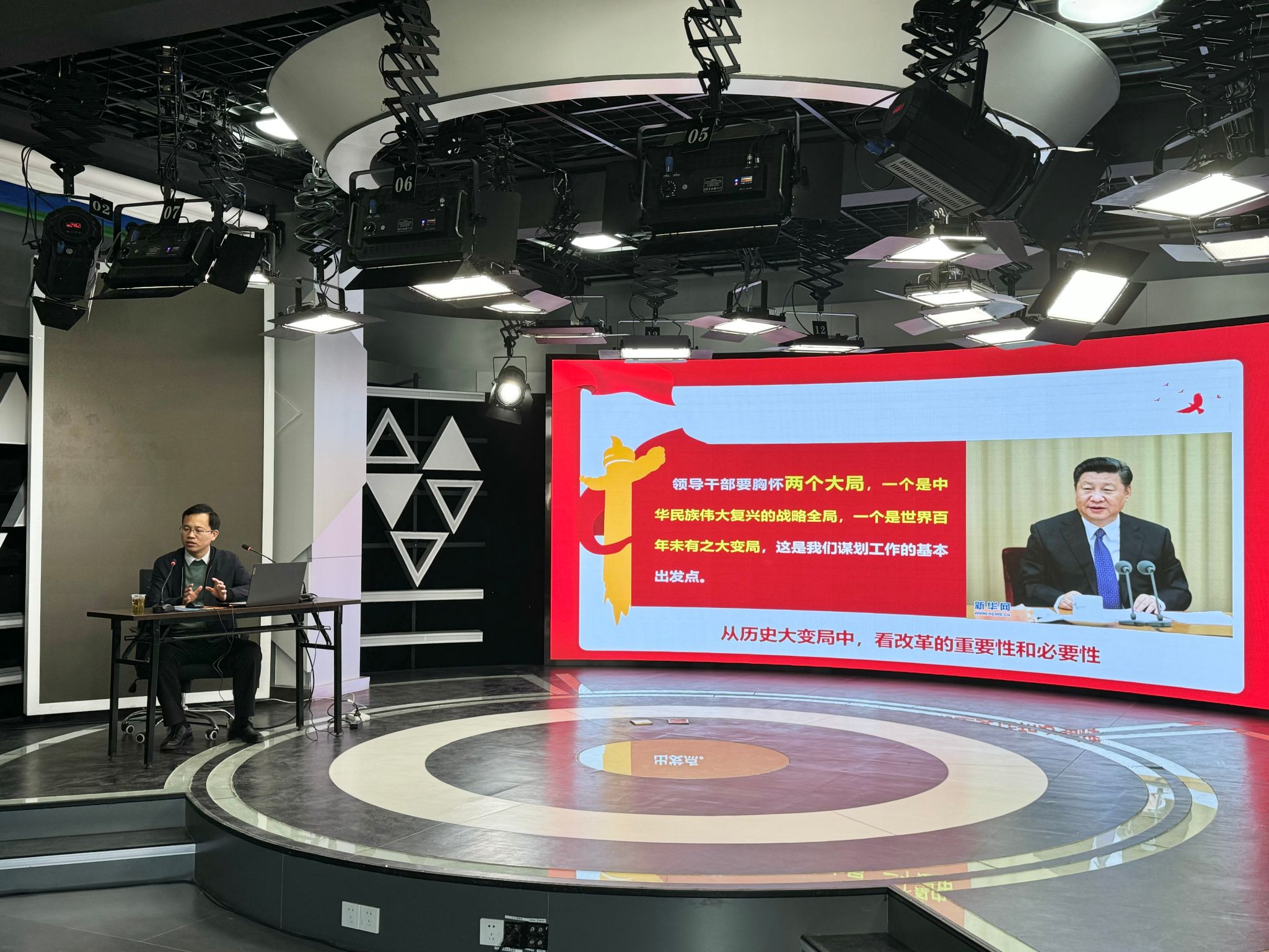 在英山县融媒体中心,武彦斌副教授作了“学深悟透二十届三中全会精神,夯实全面深化改革的思想基础”的专题宣讲,以怎么看、怎么干、怎么抓为引入,结合国内外典型事例,从理论层面和实践层面深入剖析了历史大变局中全面深化改革的必要性和紧迫性。同时,他还就新时代如何做好媒体工作、如何提高党的新闻舆论传播力、凸显主流价值等问题同与会人员进行了深入交流和探讨。宣讲内容丰富、内涵深刻,深入浅出、通俗易懂,既有理论高度,又有实践深度,对现场听众完整准确、全面领会全会精神提供了有力指引。