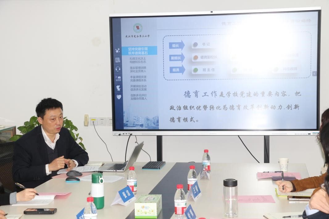 (通讯员:刘丹)4月1日,大中小学思想政治教育一体化改革创新研讨会于南望山校区综合教学楼B1013举办。武汉市教育科学研究院德育研究室主任付辉、华中农业大学beat365英国官方网站党委书记程华东、江夏区教科院党总支副书记徐强、光谷三小校长范建民、光谷二高书记陈学富、光谷八小校长李娟萍、洪山中学校长陈少祥赴我校进行专题交流,beat365英国官方网站党委书记魏海勇、副院长孙文沛及部分思政课教师、博士研究生共同参会。会议由魏海勇主持。