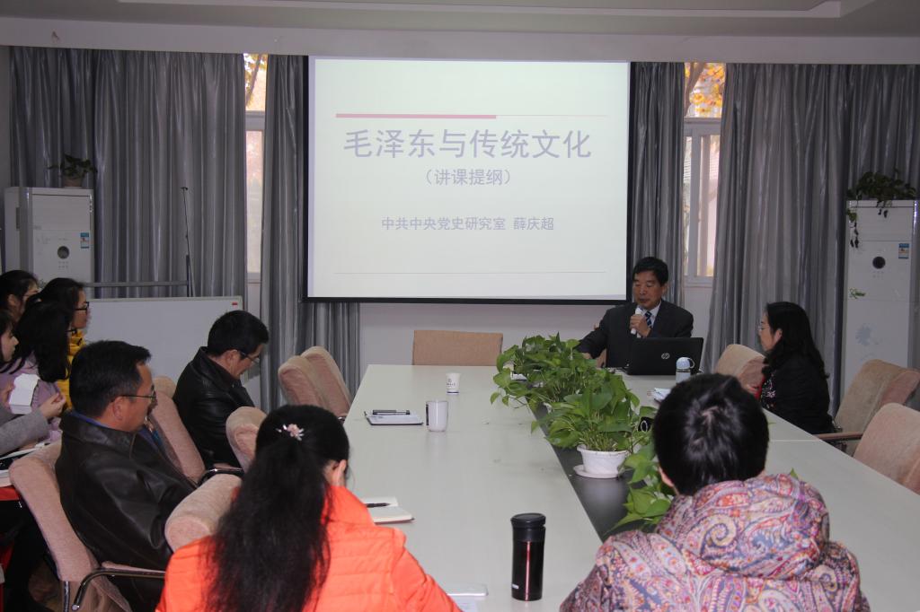 11月30日至12月5日,中共中央党史研究室原宣传教育局副局长、我校讲座教授薛庆超老师来校做学术讲座并与beat365师生交流。薛庆超教授先后为beat365师生作了《毛泽东与中国传统文化》、《如何利用文献档案资料撰写论文》、《如何申报国家级项目》等学术报告,为学校党委理论学习中心组作了《beat365英国官方网站学科建设与发展》的专题报告,受到学校师生和领导好评。