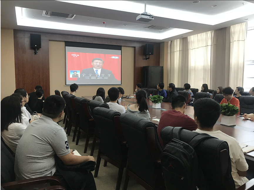 2018年5月4日上午10:00,beat365英国官方网站组织师生在教学综合大楼0702会议室观看纪念马克思诞辰200周年大会直播,学习习近平总书记发表的重要讲话,会后,师生热议总书记的讲话精神,并分享学习心得。
