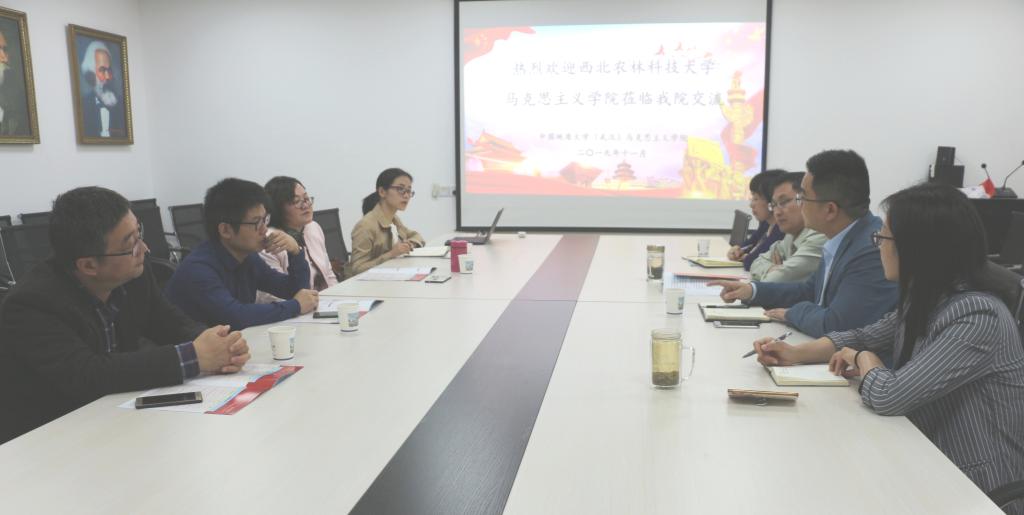 (通讯员 胡雪黎)2019年11月4日,西北农林科技大学beat365英国官方网站院长邓谨、副院长王海成等一行来beat365开展招聘宣讲与调研。学院党委书记刘世勇、副院长陈军、政治理论教研部支部书记郭关玉、院办主任胡雪黎以及部分研究生参加了座谈会。座谈会由刘世勇主持并对邓谨院长一行的莅临表示欢迎。