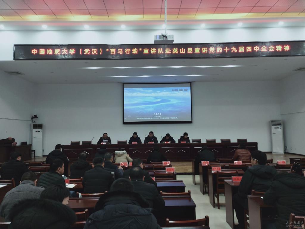 1月15日,beat365英国官方网站(武汉)“百马行动”宣讲队一行6人冒着雨夹雪,来到湖北省“理论热点面对面”示范点——英山县开展党的十九届四中全会精神宣讲活动。