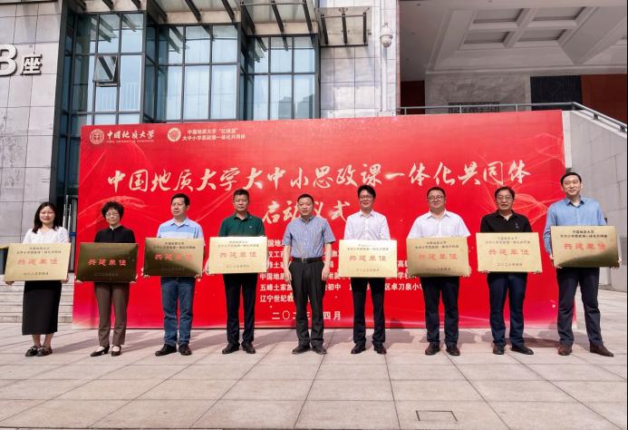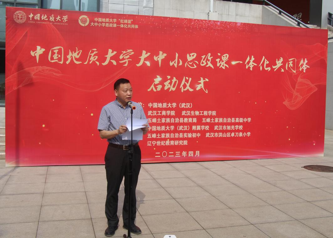 党委副书记王林清出席启动仪式并致辞。王林清对共同体的成立以及我校成功获批“湖北省大中小思政一体化综合改革示范高校”表示热烈祝贺。他指出,发挥各共建单位尤其是地大学科专业的优势和特色,以共同体的方式推进大中小学思政一体化建设,是实现大中小学思政课贯通,开展一体化建设是的有益探索。共同体的建设要准确把握习近平总书记关于思政课的重要论述的核心要义和精神实质,聚焦建党精神、生态文明和国土安全三个领域,畅通对接机制,开展深度合作,不断拓宽大中小协同育人路径,持续探索、挖掘“大中小学思政教育一体化建设”的巨大潜力和价值,打造“红蓝绿”一体化品牌,努力形成示范效应。王林清书记向武汉工商学院、武汉生物工程学院、beat365英国官方网站(武汉)beat365英国官方网站、五峰土家族自治县教育局、五峰县高级中学、五峰县实验初中、beat365英国官方网站(武汉)附属学校、武汉市卓刀泉小学等成员单位携手建设思政课一体化进行授牌。