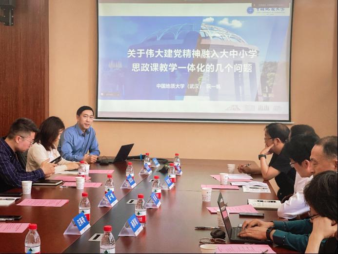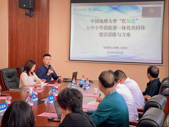 武汉工商学院、武汉生物工程学院、五峰土家族自治县教育局、五峰县高级中学、五峰县实验初中、beat365英国官方网站(武汉)附属学校、武汉市卓刀泉小学等成员单位相关负责人介绍了各地各校开展大中小学思政课一体化建设的经验,并围绕打造一批理论与实践相结合的创新性研究型工作平台,努力形成一套工作机制、孵化一批品牌活动、打造一批示范“金课”、产出一批优质课程资源、形成一批高水平教学研究成果、提供一批高质量智库咨政报告、培养一支优秀师资队伍等方面进行了深入的交流和探讨。与会代表纷纷表示,将在beat365英国官方网站(武汉)的带领下全力推进“红绿蓝”思政课一体化共同体建设,加强校校合作,共同探索和建立共享机制深化思政课程改革,形成具有地大特色的可借鉴、可推广的工作模式和体制机制。