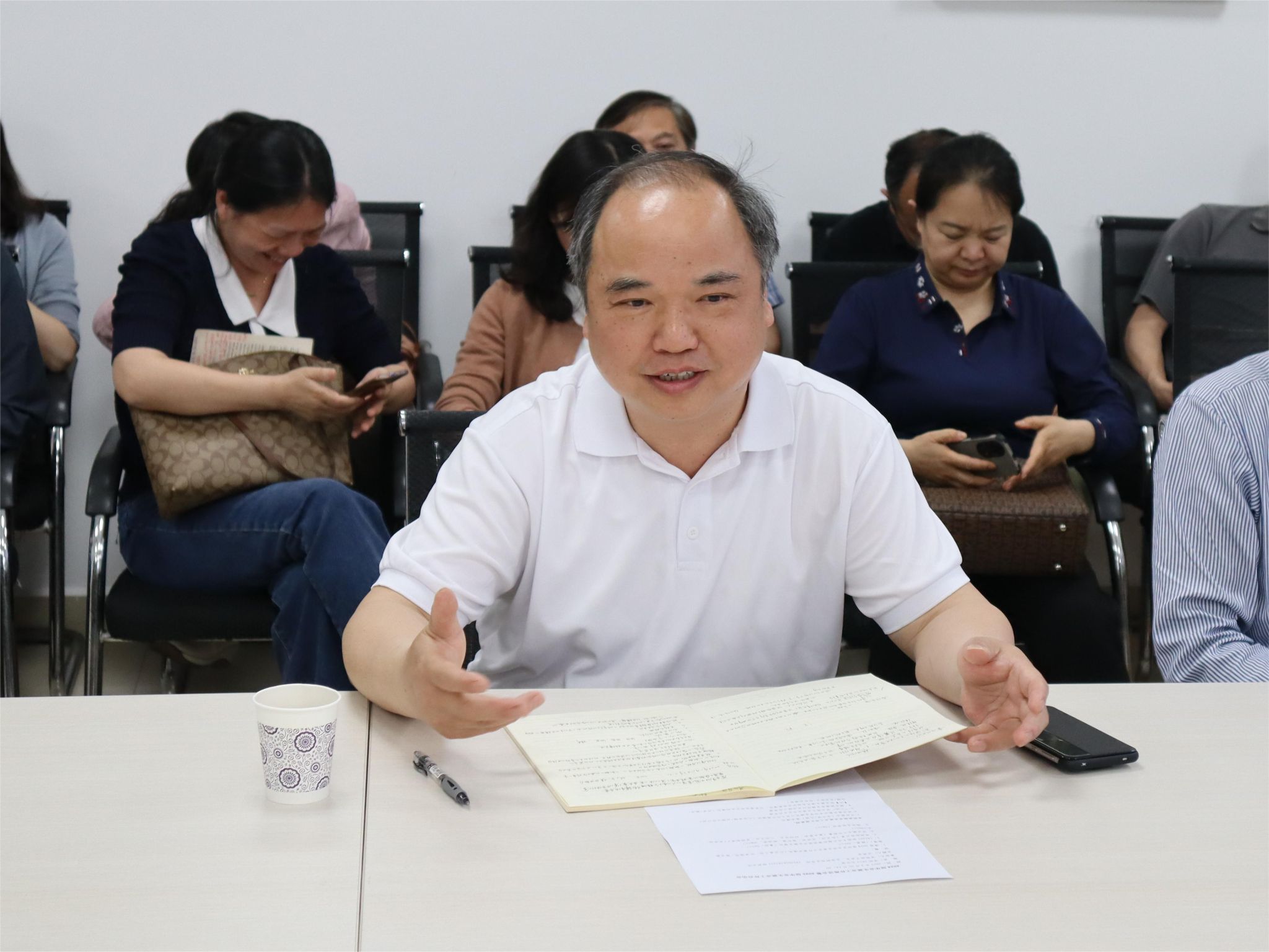 武彦斌介绍了学院近三届毕业生去向落实情况,指出在指导学生就业过程中,导师与班主任要及时掌握学生简历、指导学生做好合理规划,加强实践与理论方面的积累,并结合自身经验引导学生预期,以实现尽早就业。同时,他传达了上级教育主管部门以及学校就业工作会议的精神,并结合学院实际进行了工作部署。