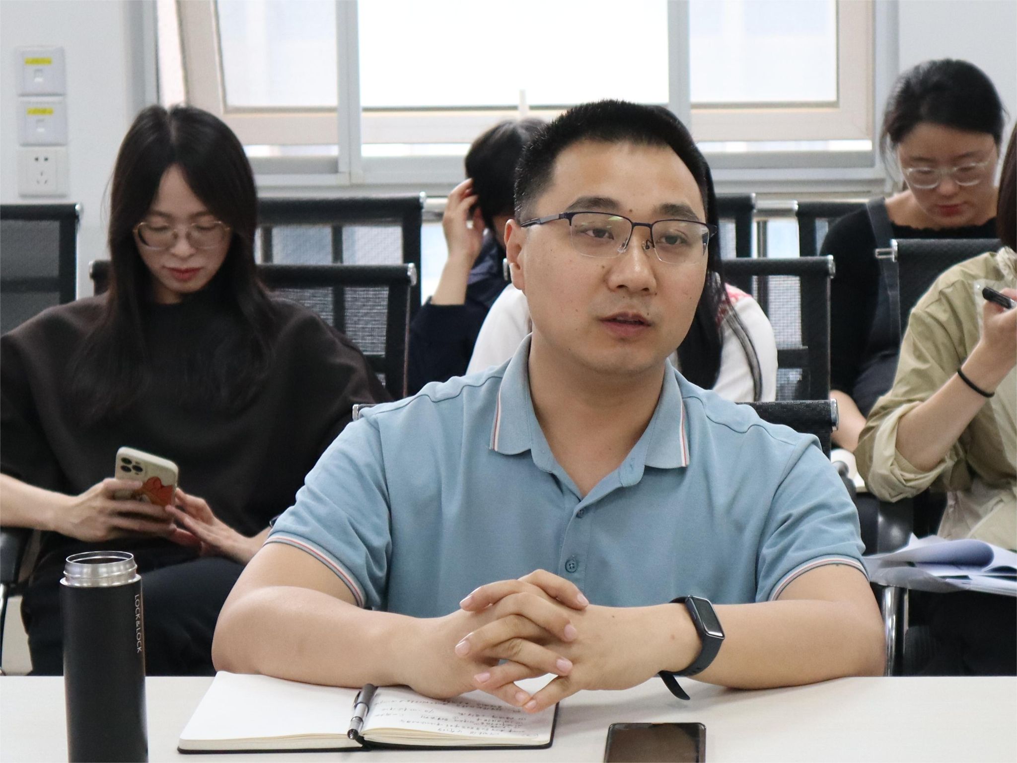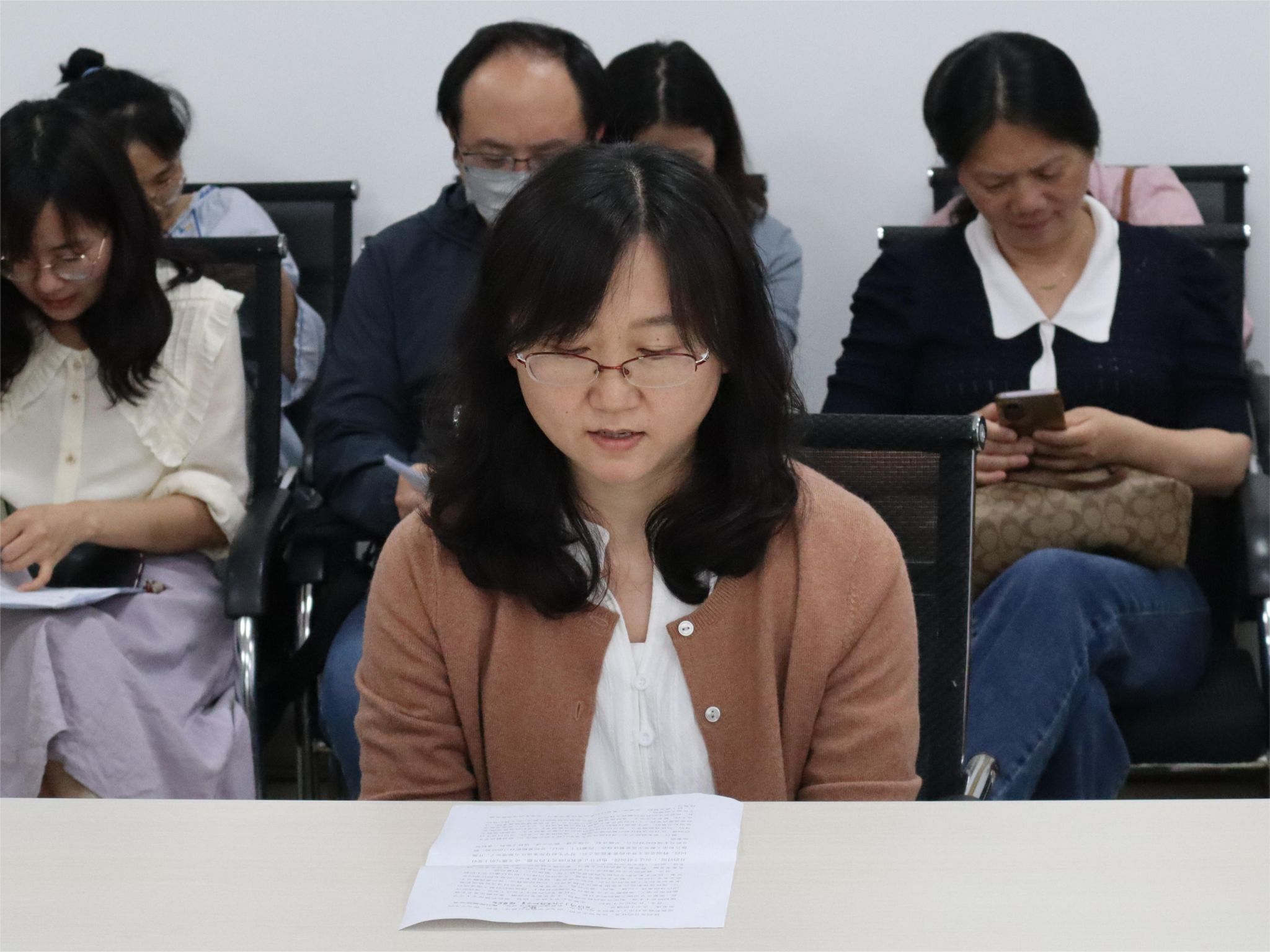 姚晟老师通报了2024届毕业生就业工作整体情况,并汇报了学院就业工作推动落实情况。181201班班主任曹阳汇报所带毕业班的就业落实情况,对于尚未落实毕业去向的同学情况进行了详细汇报,并表示将持续教育引导与帮扶。