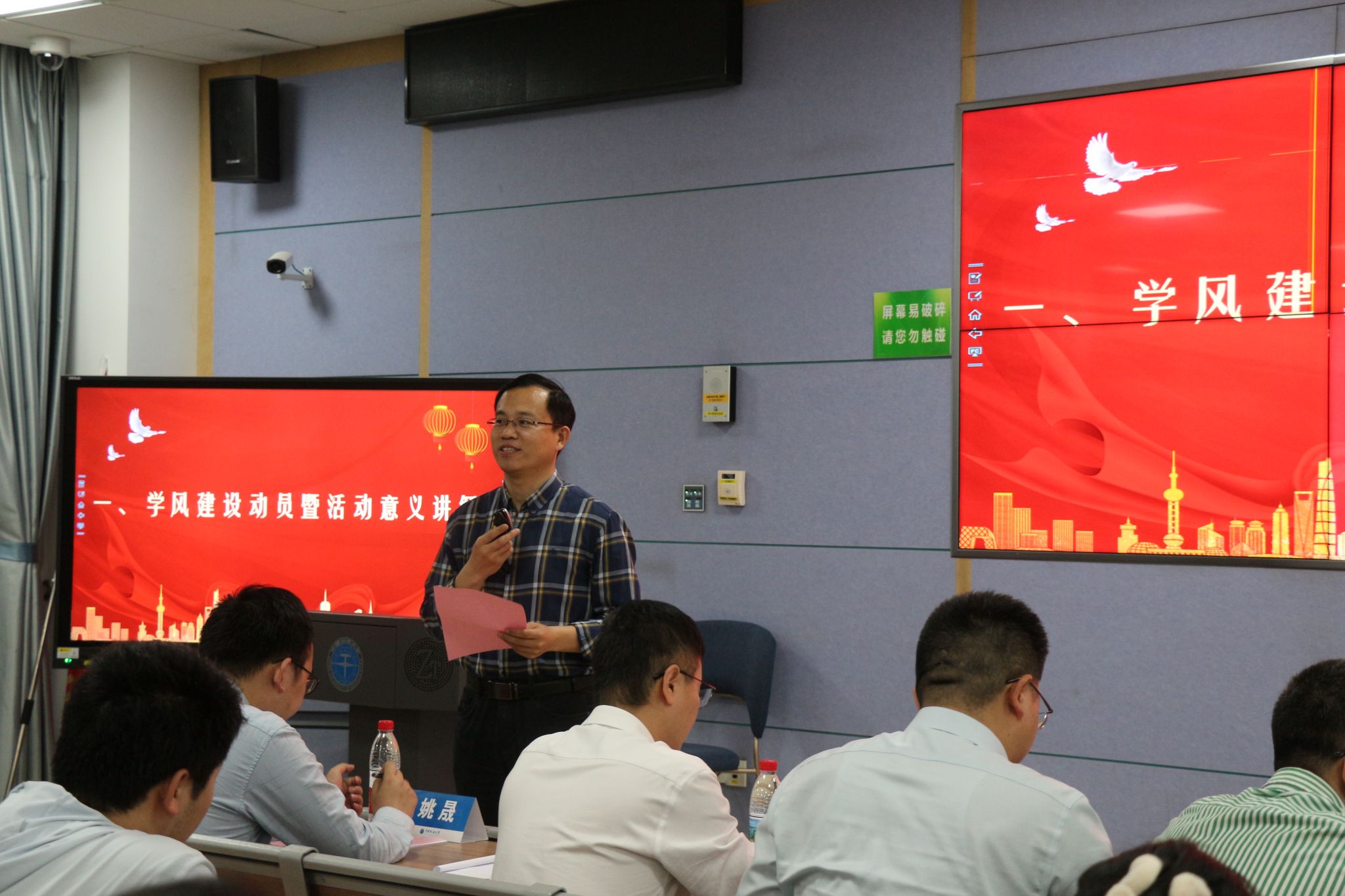 武彦斌作学风建设动员暨活动意义讲解。他从意识与能力、思想和行为、现在与未来切入,强调学风建设对于个体成长与学风营造的重要作用,从认识自我、发现自我、提升自我、成就自我的角度,阐明学院举办“红色文化科技节”的重要意义,希望通过以赛促学在广大同学中进一步营造良好比学赶帮超的学习氛围。