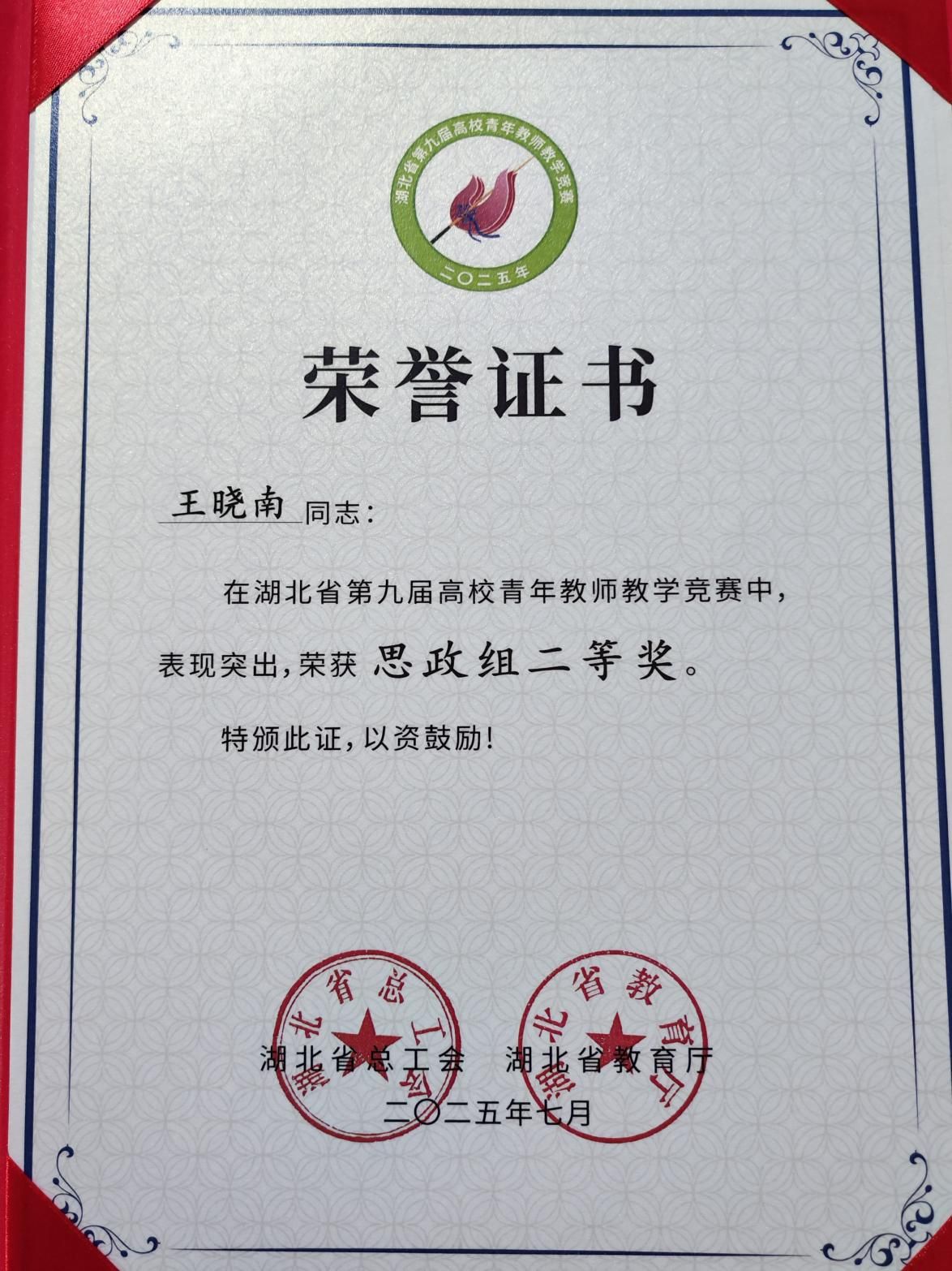 “非常感谢学校、学院诸多领导和老师的指导和帮助,荣誉属于大家。参加此次教学比赛,是一次深刻的历练与提升。通过备赛、参赛,我的教学理念和教学方法得到了深化和丰富。我将系统梳理、总结比赛过程中的经验和收获,将其转化为指导后续教学的宝贵资源,切实提升思政课教学的思想性、理论性和亲和力、针对性,更好地落实立德树人根本任务。”王晓南老师说。