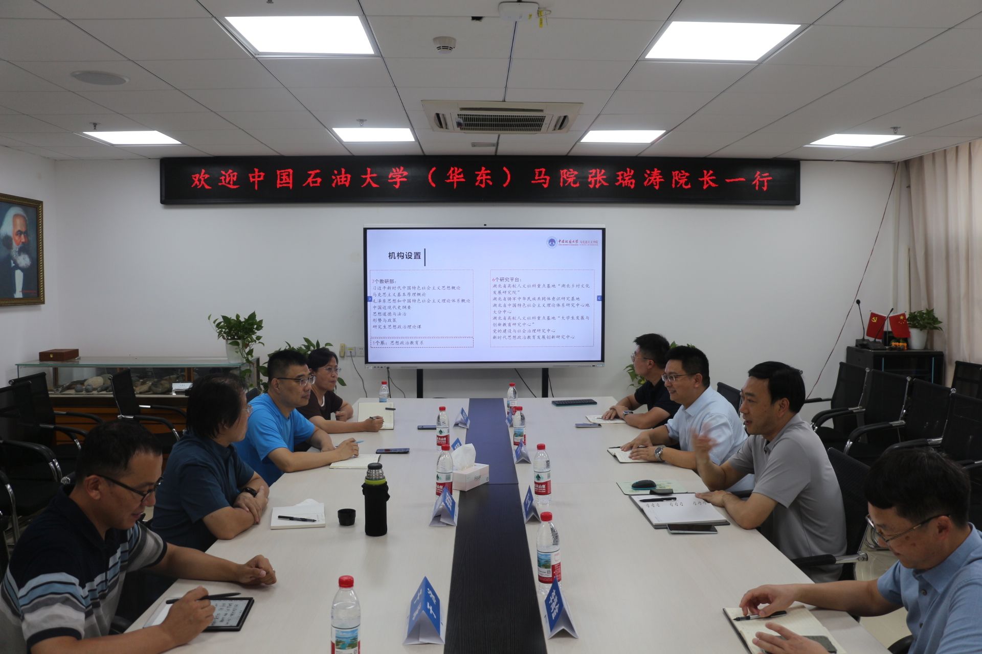 阮一帆院长对张瑞涛院长一行来校表示欢迎,重点介绍了beat365的发展历程、机构设置、师资队伍、思政课建设、学院发展思路、省级重点马院建设和人才培养等特色经验。石油大学张瑞涛院长一行也分别介绍了马院的发展思路以及学科特色上的探索经验。