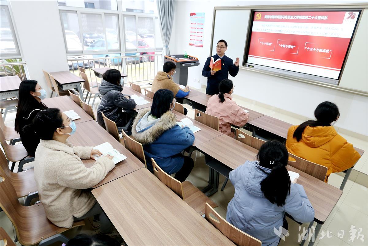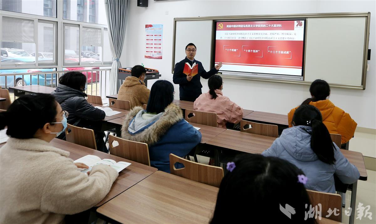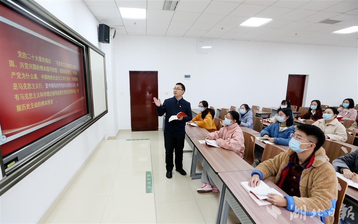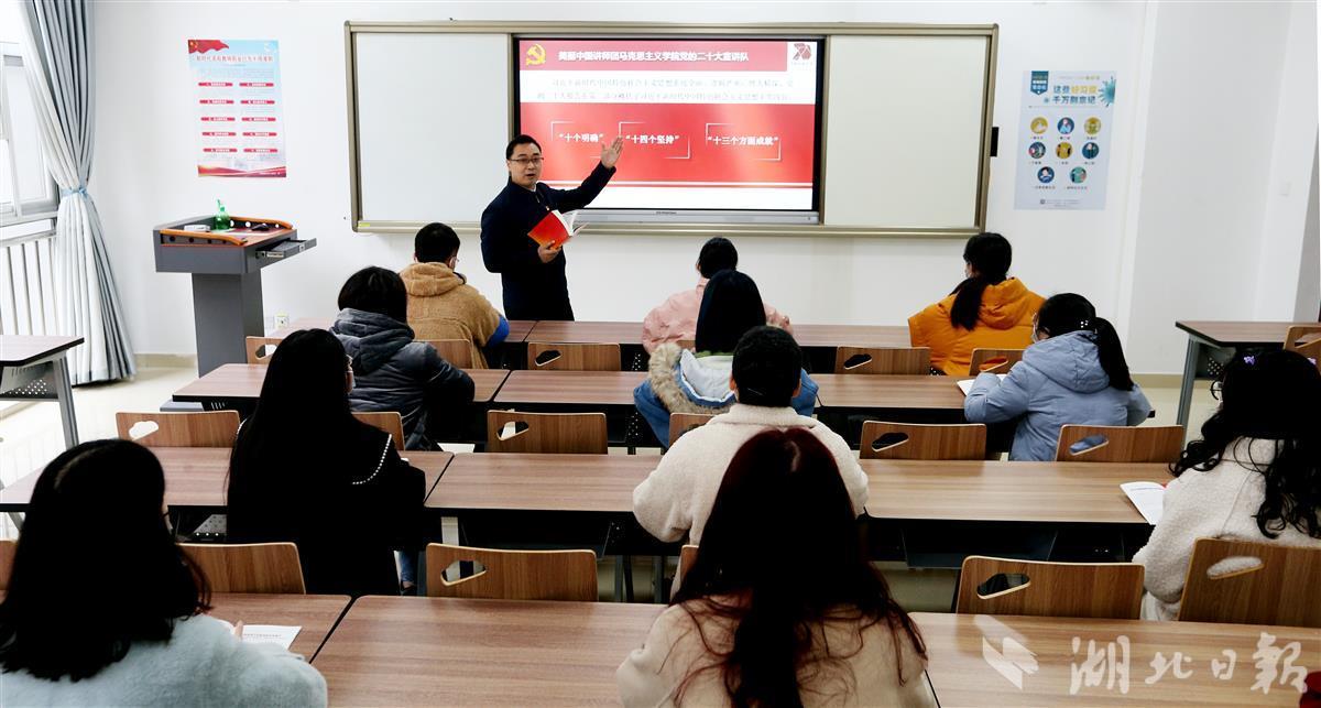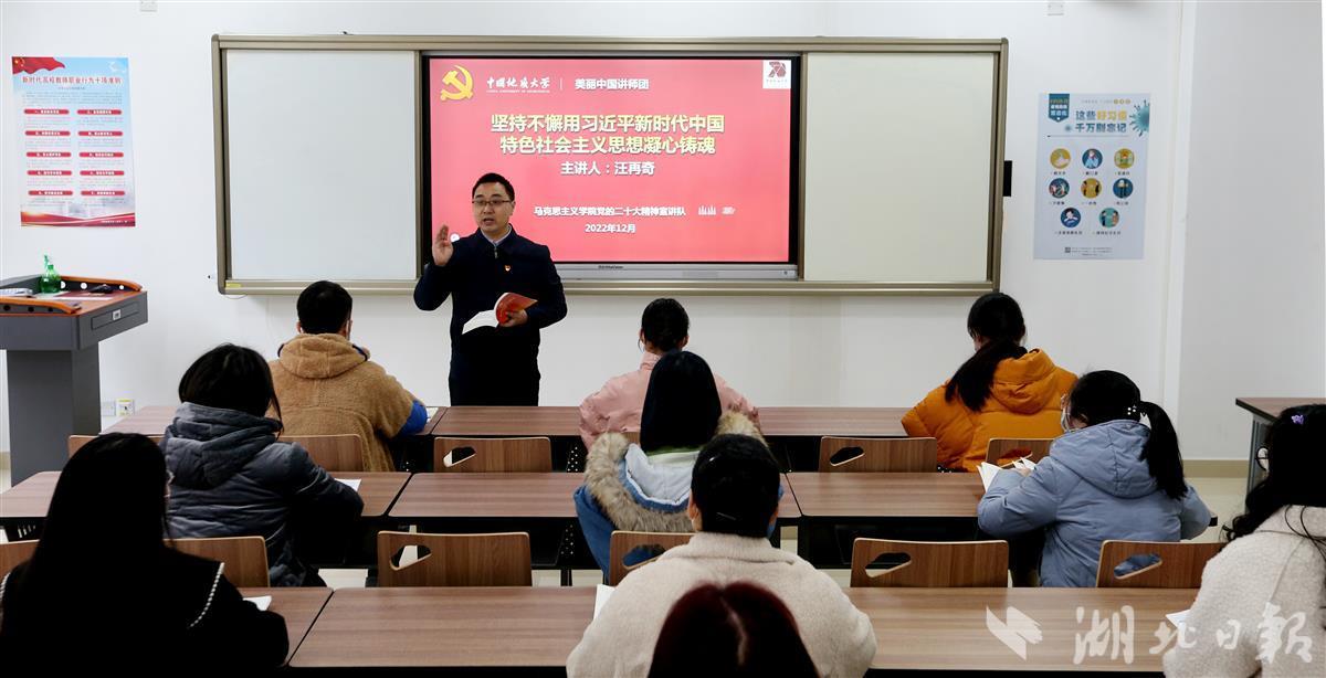 12月8日,beat365英国官方网站(武汉)beat365英国官方网站汪再奇副教授,用通俗易懂的语言在课堂为学生宣讲党的二十大精神,激励青年学子不忘初心跟党走,勇担重任立潮头,用知识报效祖国,建功新时代新征程,并与同学们互动交流分享学习体会。