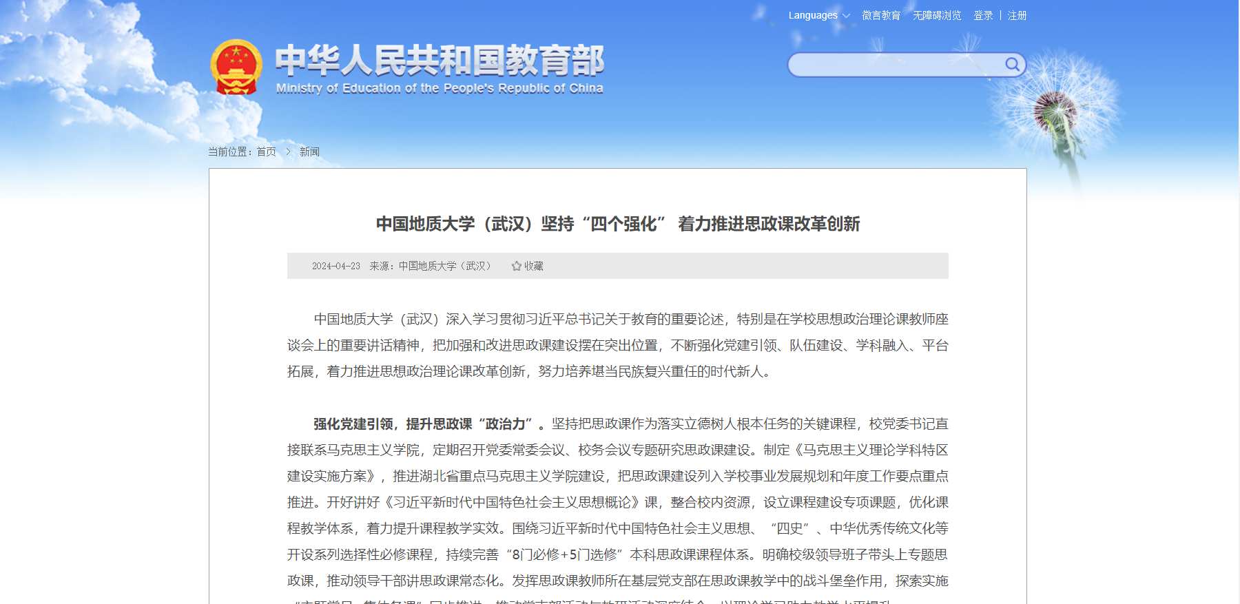 强化学科融入,提升思政课“品牌力”。发挥学校学科专业特色优势,聚焦领土、领海、领空等12个领域,打造“国土安全”品牌思政课。集合beat365英国官方网站、地球科学学院、资源学院等师资力量,组建“国土安全”教学团队,通过多种教学形式,引领学生增强爱国意识、安全意识,强化维护国家安全的责任担当。创建沉浸式国土安全虚拟仿真实验课,让学生真实感受历史,认识国土安全的重大意义。“国土安全品牌思政课信息化建设”获批全国高校数字思政精品项目(第二批)。充分发挥校本资源在思政课建设中的独特优势,将“艰苦朴素、求真务实”的校训、南迁办学精神、攀登精神以及涌现的杰出人物、事迹等,有机融入概论课教学。联合10余家单位创建大中小学思政课一体化共同体,建设“建党精神”(红)、“生态文明”(绿)、“国土安全”(蓝)三个模块,实现“红色中国—美丽中国—平安中国”现状展示和价值引领。开展“伟大建党精神一体化融入大中小学思政课的理路”集体备课,促进思政课教师共学共研、互学互鉴。开展逸夫博物馆生态文明实践研学活动和“长江流域生态文明”大中小学思政课一体化共同体专项社会调查,强化大中小学生对“美丽中国”和“两山论”价值认同。组织开展“总体国家安全观”共同体教学展示活动,设计制作大中小学思政课一体化示范教学资源,获评湖北省大中小学思政课一体化共同体教学展示活动特等奖。